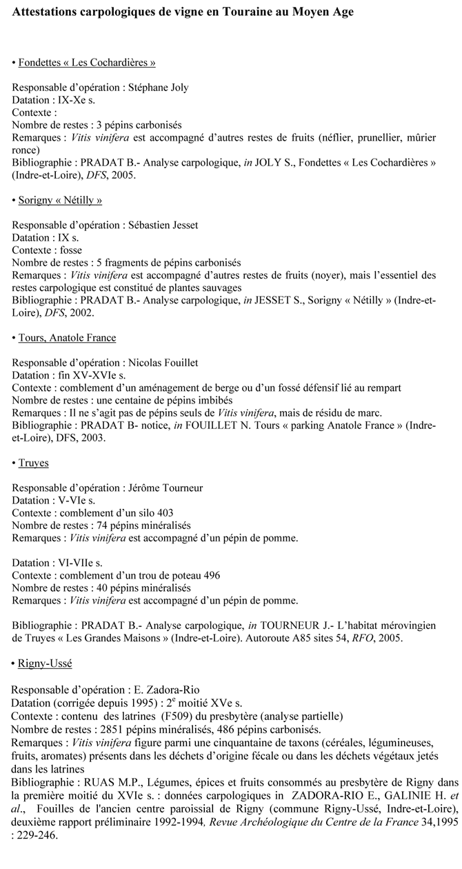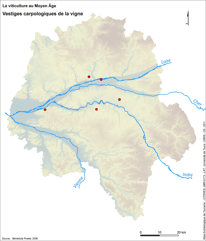 Les vestiges carpologiques de la vigne (état des données en 2006) mettent en évidence une présence de la viticulture dans la proximité immédiate des vallées de la Loire et de l'Indre.