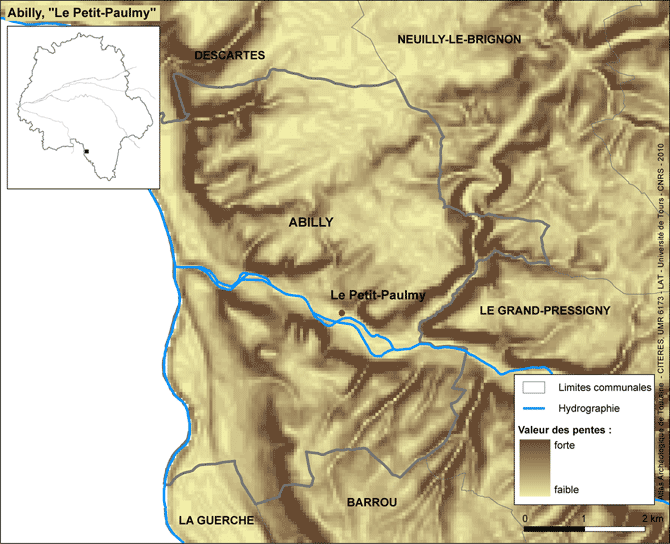 Situé sur le versant de la rive droite de la Claise, à l'entrée est du bourg d'Abilly, le Petit Paulmy fait partie, avec l'habitat du Foulon, de toute une aire d'habitations et d'activités de l'homme préhistorique.