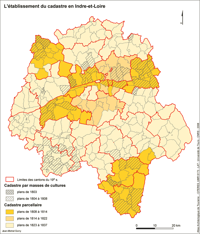 Le premier cadastre, dit par "masse de culture", regroupait les terres selon leur culture, sans représenter les parcelles de chaque propriétaire (voir document 1). Il fut réalisé pour 13 communes d'Indre-et-Loire, mais il s'avéra rapidement insuffisant et il fut remplacé par le cadastre parcellaire, réalisé entre 1807 et 1837.