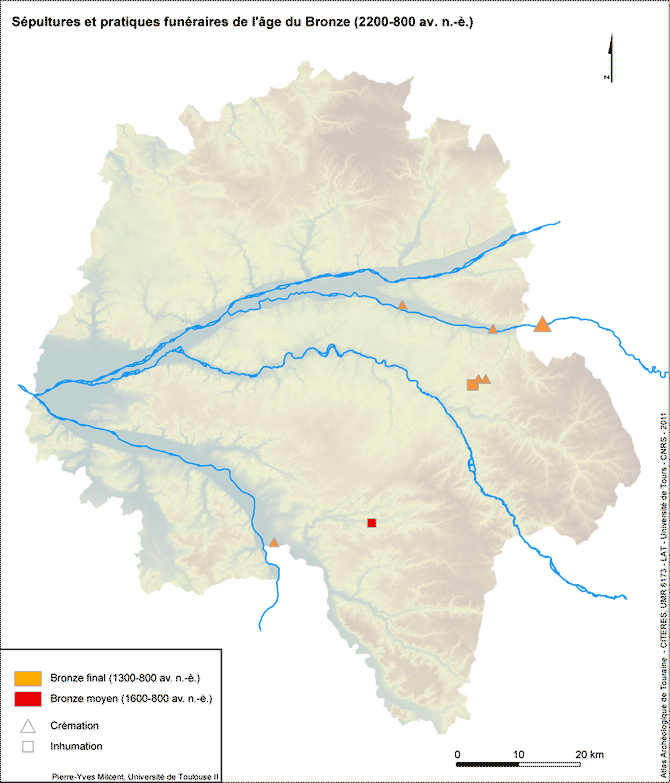Aucune tombe n'est encore identifiée pour l'âge du Bronze ancien, et seule une tombe à inhumation, récemment fouillée à Ligueil, est attestée pour l'âge du Bronze moyen (1600-1300 av. J.-C.).