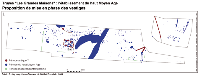 Sur des terrains occupés pendant tout le Haut-Empire s'implante une importante occupation domestique du 5e au 7e s. et surtout de la seconde moitié du 6e s. au début du 7e s. L'existence de nombreuses constructions sur poteaux est probable, surtout en bordure occidentale du chemin. L'espace funéraire lâche qui succède à cette occupation n'apparaît pas avant la fin du 7e s. voire le 8e s. Limité en intensité et dans le temps il disparait au plus tard aux 9e-10e s. L'absence d'occupation postérieure est probablement liée à une reprise forestière, la forêt de Bréchenay étant clairement attestée sur ces terrains avant son défrichement de 1540.