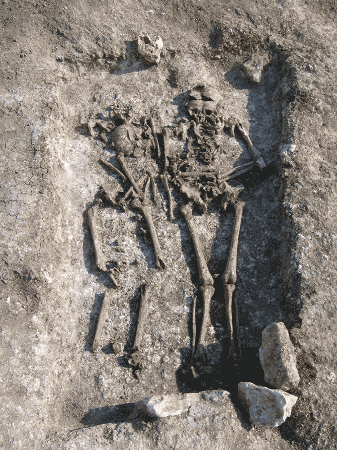 Sépulture double. Auteur : J. Tourneur, Inrap