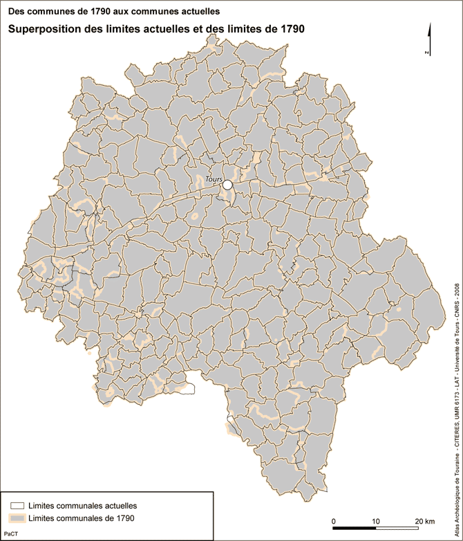La carte permet de visualiser les limites exactes des 316 communes du département d'Indre-et-Loire pour lesquelles s'applique la Constitution du 3 septembre 1791. Le décret de création du département pris le 26 janvier 1790 ayant décidé la réunion des communautés de Saint-Laurent-de-Langeais et Saint-Jean-de-Langeais, leur limite séparative n'a pas été indiquée.