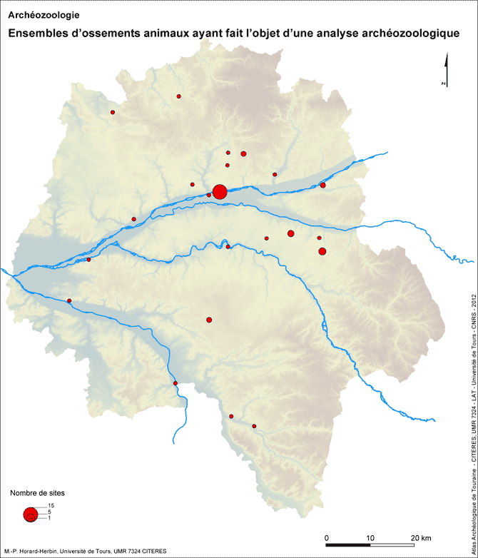 Les études archéozoologiques se sont fortement développées depuis une dizaine d'années en Touraine et concernent 81 assemblages issus de 44 sites fouillés dans 22 communes, celle de Tours étant particulièrement bien documentée.