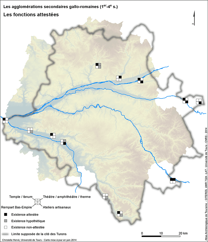 En l'état actuel des connaissances pour la Touraine, le corpus des agglomérations antiques potentielles comprend 28 sites plus ou moins bien documentés, dont près d'une quinzaine bien assurée.